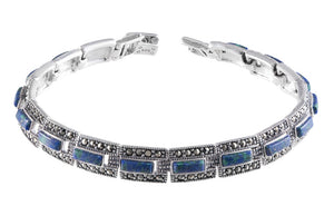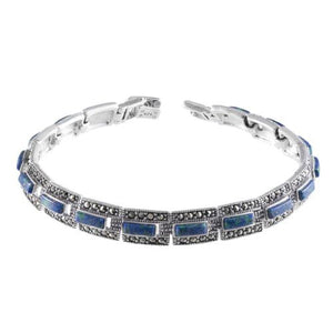 צמיד בעיצוב גאומטרי קלאסי, משובץ באבן אילת – האבן הלאומית של ישראל, המכונה גם "אבן המלך שלמה". האבן, בגוונים טבעיים של כחול וירוק, מעניקה לכל פריט תחושת עומק, שורשיות וחיבור לנופי הדרום.