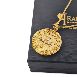 תליון מטבע זהב מחצית השקל דו צדדי משובץ יהלומים