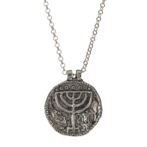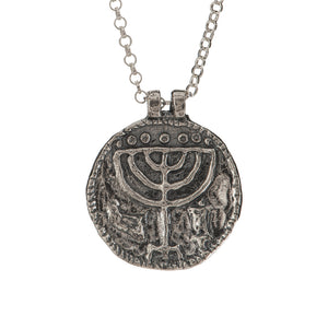תליון המנורה עוצב בהשארת מטמון המטבעות שנמצא לאחרונה בין עיר דוד להר הבית, למרגלות הכותל הדרומי,  מטמון יהודי בן 1400 שנים. המטמון הנדיר הכיל מטבעות ומטילי זהב שונים, אך בנוסף הכיל גם מדליון זהב טהור גדול ויפהפה, יחד עם שרשרת זהב מעשה אומן ובה מדליונים קטנים נוספים – שכנראה שימש כתכשיט לספר תורה. על המדליון מוטבעים מנורת המקדש, שופר וספר תורה, על התכשיט מדליונים נוספים עם עיטורים.