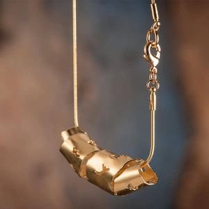 השרשרת עוצבה בהשראת ממצא ארכיאולוגי מיוחד במינו, לוחית כסף ועליה פסוקים מתפילת "ברכת כהנים": פסוקים אלו הם העדות הקדומה ביותר לפסוקי המקרא (במדבר ו`, כד`-כו`): יְבָרֶכְךָ ה' וְיִשְׁמֶרְךָ. יָאֵר ה' פָּנָיו אֵלֶיךָ וִיחֻנֵּךָּ. יִשָּׂא ה' פָּנָיו אֵלֶיךָ וְיַשֵּׂם לְךָ שָׁלוֹם. וְשָׂמוּ אֶת שְׁמִי עַל בְּנֵי יִשְׂרָאֵל, וַאֲנִי אֲבָרֲכֵם. הלוחית נמצאה מגולגלת באופן שאפשר השחלת חוט לצורך לבישתה על הגוף בתור תכשיט או קמע. שתי לוחיות כאלו נמצאו במערת קבורה ב"כתף הינום" במהלך חפירה שנערכה שם בשנות השבעים. לוחיות אלו מתוארכות למאה השביעית לפני הספירה, לקראת סוף תקופת בית ראשון.